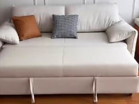 The Diaz Scratch Resistant Leather Sofa Bed is perfect for a compact living space, offering a comfortable seating option with plush armrests and backrest. Its foldable backrest and easy pull-out bed provide a simple solution for a sleeping space. With its compact size, it is ideal for guest rooms or smaller living areas without taking up too much space.