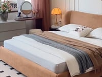 The Massimo Bed Frame combines sophisticated design with practical durability through its scratch and spill resistant upholstery. Its distinctive curved headboard creates an elegant silhouette while offering exceptional functionality with water and stain repellent properties for effortless maintenance. The versatile frame can be customized with various fabric options and configured with optional storage compartments, delivering both aesthetic refinement and practicality. This contemporary piece elevates any bedroom with its refined presence and thoughtful engineering.