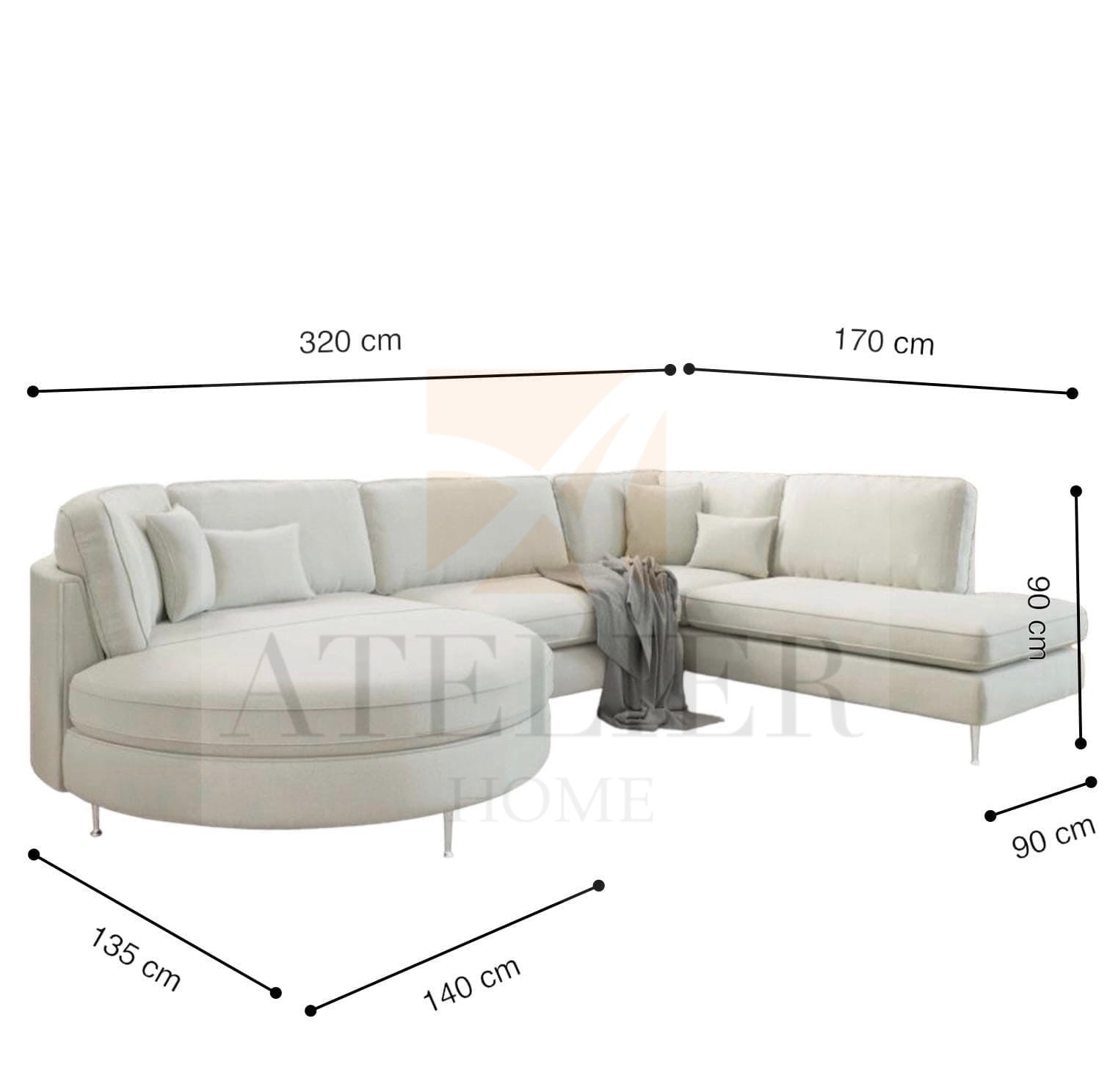 Upgrade your living space with the Maxim Sectional Curve Sofa, designed with a round chaise and plush backrest cushions for superior comfort. A clean, sleek design adds elegance and luxury to your home and makes this sectional sofa the perfect addition to any living room.