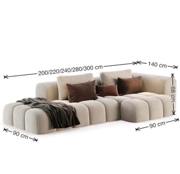Miranda's Boucle side chaise sofa exudes sleek elegance with its water and stain-repellent tufted seats. Perfect for lounging while streaming your favorite shows, this designer sofa ensures your comfort stay pristine, so you can relax in style.